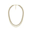 Short multi-strand fringe necklace in sterling silver chain braided with gold lurex yarn.